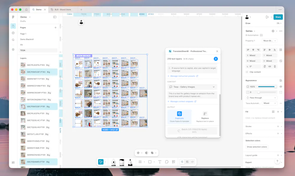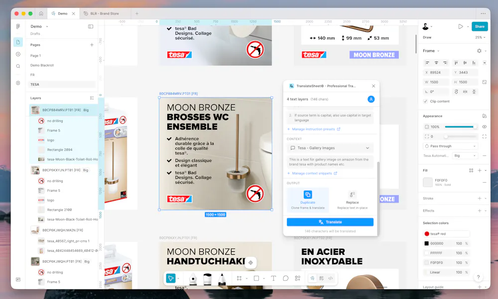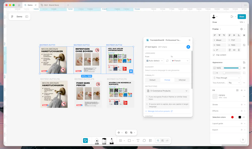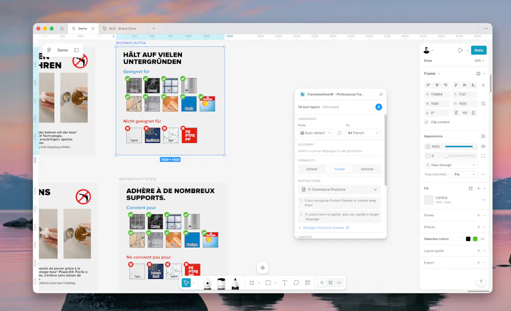TranslateSheet is the most format-preserving Figma plugin for DeepL, built with deep Figma API integration to solve what other translation plugins can't: maintaining your exact typography, colors, and text styles through translation. π